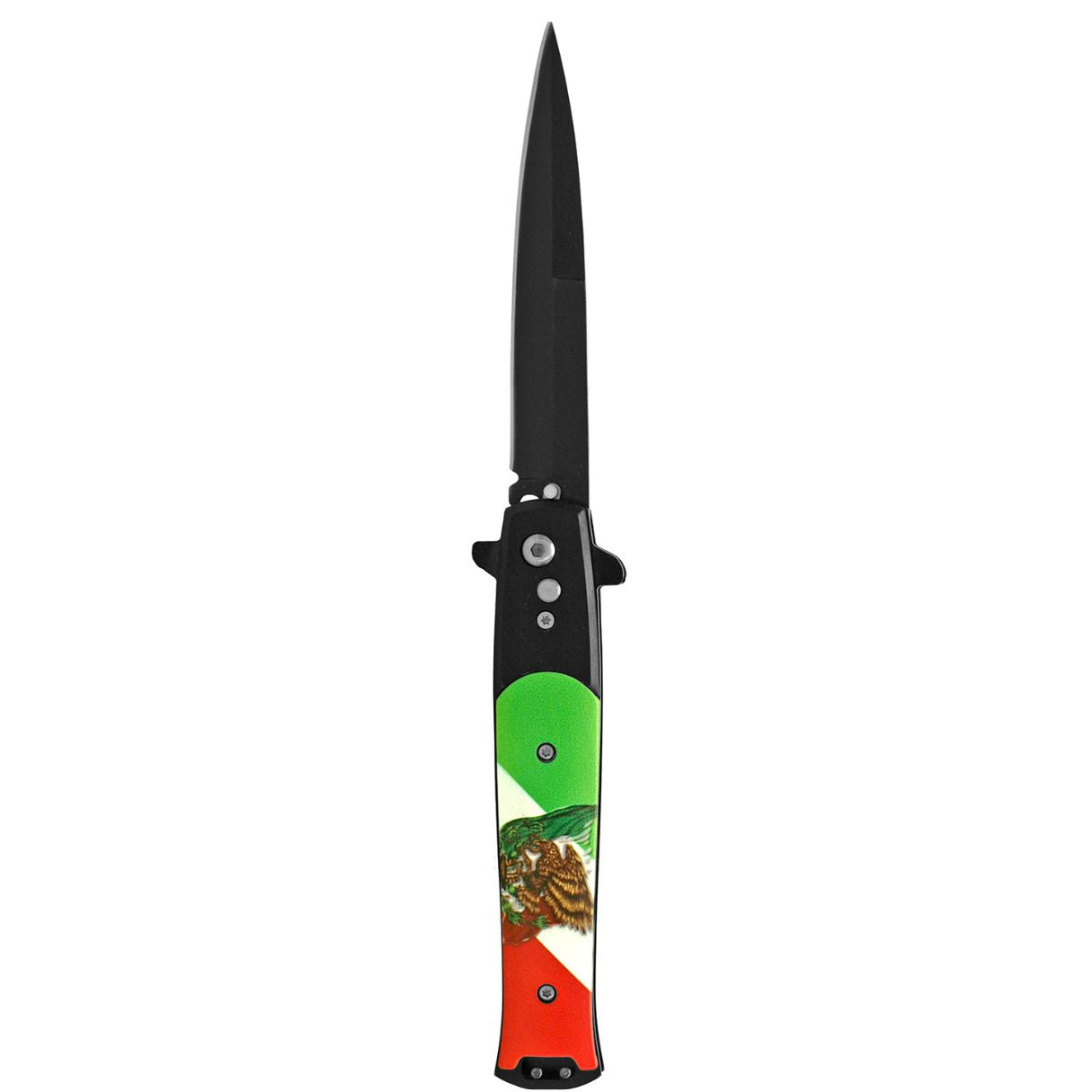 4.88" Push Button Switchblade Folding Pocket Knife - Mexican Flag
