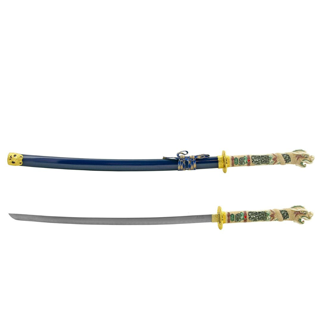 42.5" Ceremonial Award Samurai Katana Sword with Detailed Dragon Art Work Handle - Blue