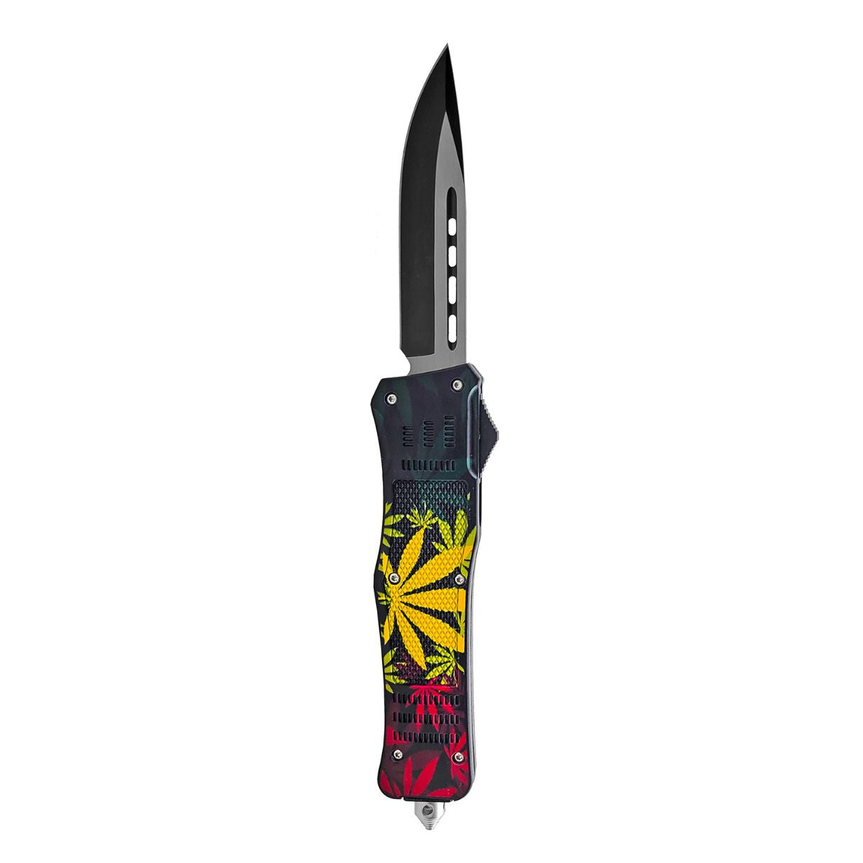 5.75" Tactical Out the Front Automatic Folding Pocket Knife - Mary Jane Pot Leaf