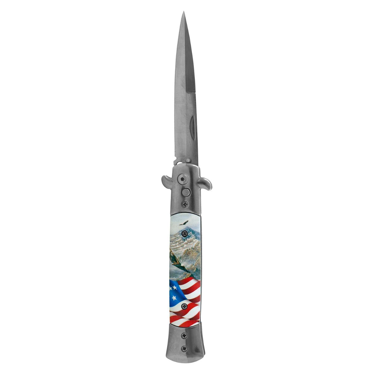 5" America the Beautiful Push Button Automatic Switchblade Folding Pocket Knife - Red, White, and Blue Flag
