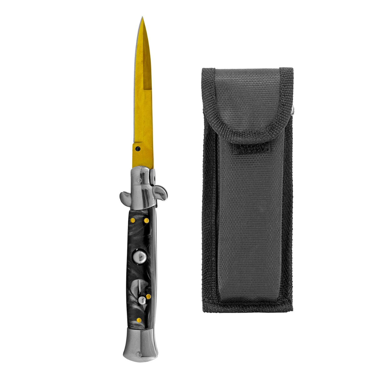 5" Stainless Steel Traditional Flip Open Switchblade Folding Pocket Knife - Black and Gold