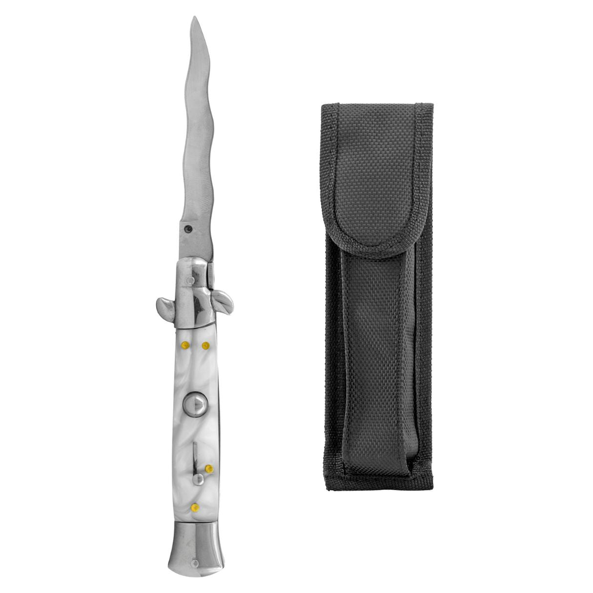 5" Stainless Steel Traditional Flip Open Switchblade Folding Pocket Knife -White Marble
