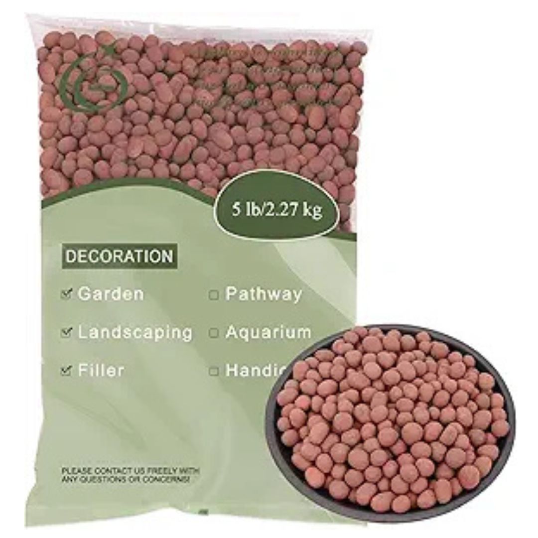 【Perfect size】 5LBS of natural original expanded clay pebbles, the diameter varying form 14mm to 16mm (0.5-0.7in), which is suitable for Hydroponics flower and add beauty to your potted plants in your yard.