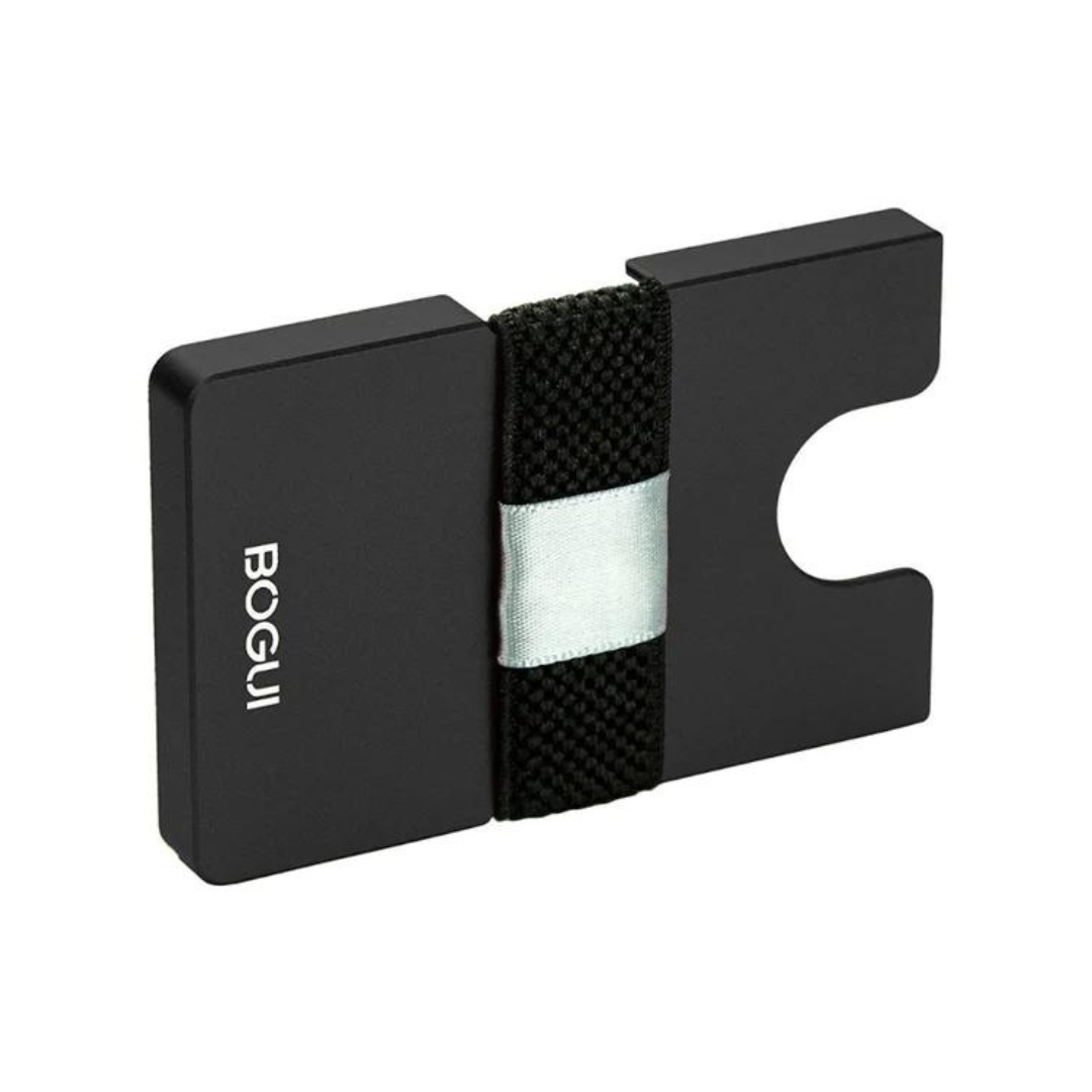 The SLIP Wallet is an ultra-lightweight minimalist wallet, perfect for holding your essential cards. The flexible slip strap allows you to easily access and secure your most important credit cards and IDs. BOGUI Premium Wallet Slip Black. A wallet is made up of aluminum. This wallet has a compact design. Simply insert your cards in the front slot and they will insert securely in place. Durable material for long term use. Holds up to 8 cards.