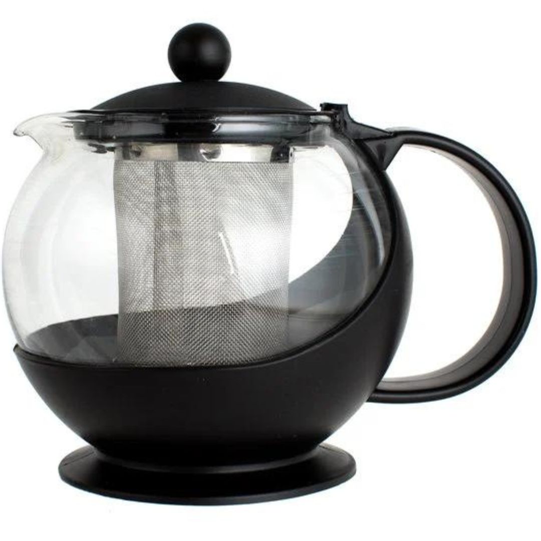 This tea pot infuser features a durable tempered glass design and sleek black plastic body. A sturdy handle ensures a solid grip for precise pouring, while a convenient knob handle makes placement and removal of the lid quick and easy. The crystal-clear tempered glass carafe enables optimum visibility from all angles so your guests can keep an eye on the strength and level of tea within. This tea pot infuser is perfect for cafes, bistros, and coffee shops alike!