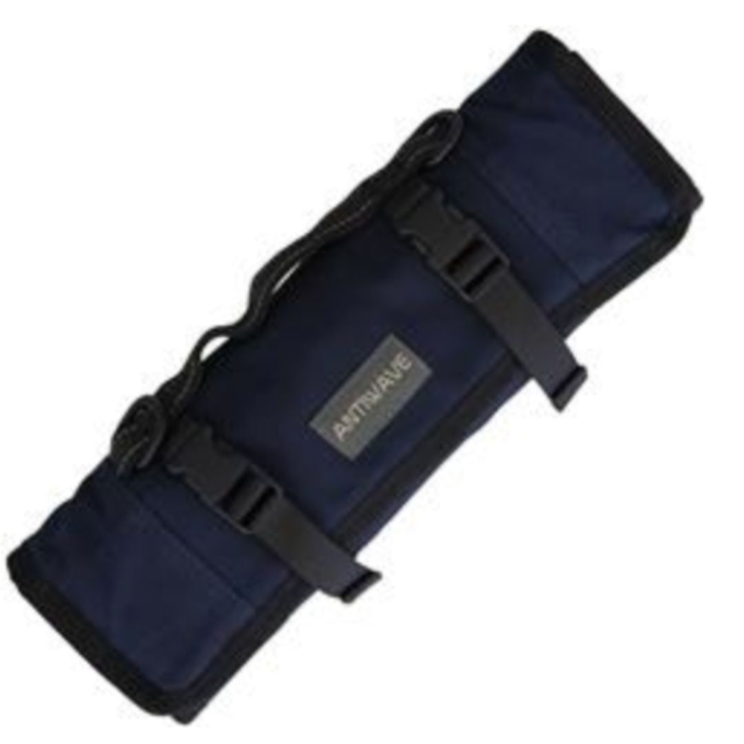 Dimensions: 24.6" x 12.5". 23 EDC gear pockets: 4 pen pockets, 14 knife/gear pockets, 4 tool pockets, 1 full body concealed kitchen knife pocket with extra strong Velcro strap. Two adjustable straps. Top carry handle. Blue and black nylon construction. Bulk packed.