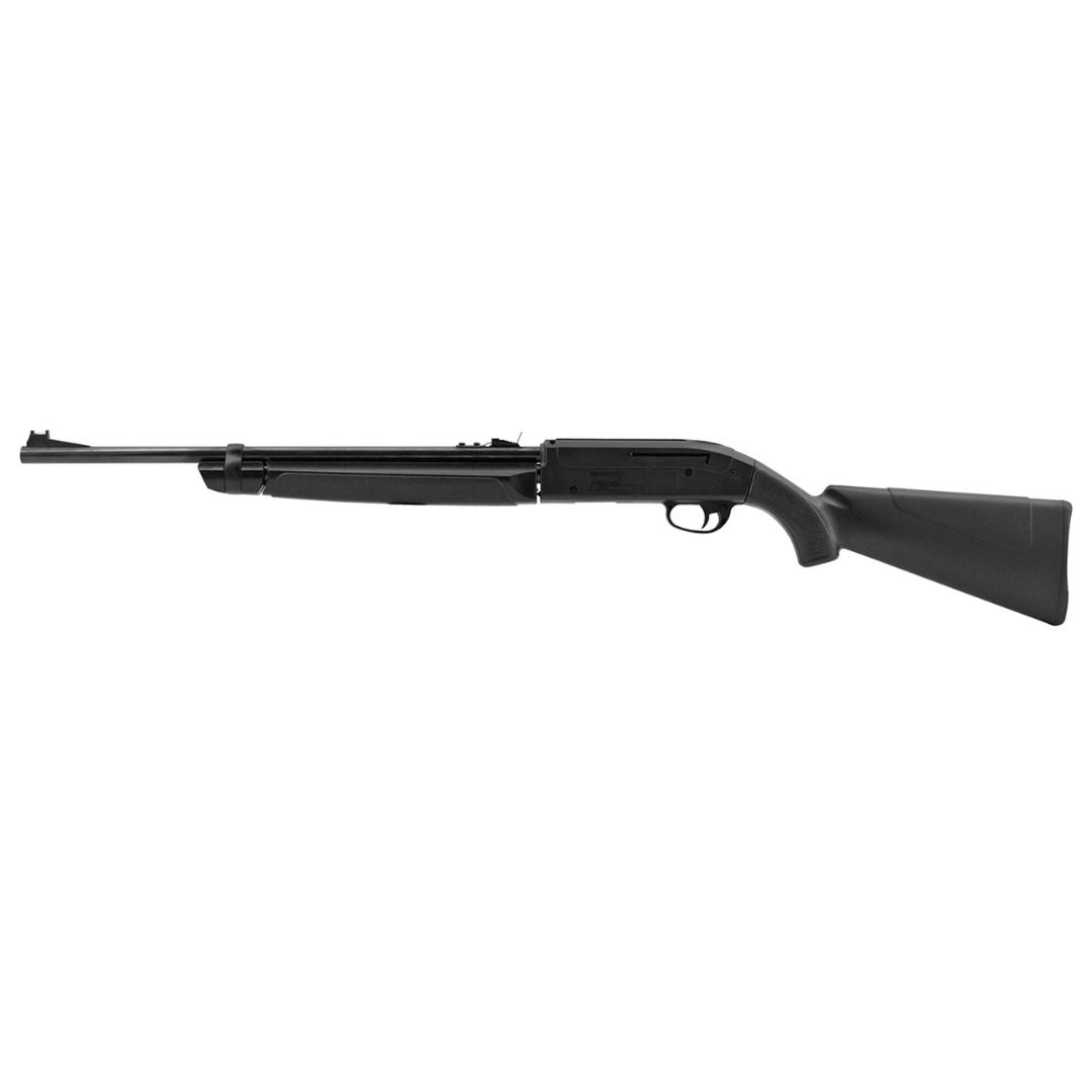 Durable all-weather synthetic stock with checkered grip and forearm and a rifled steel barrel