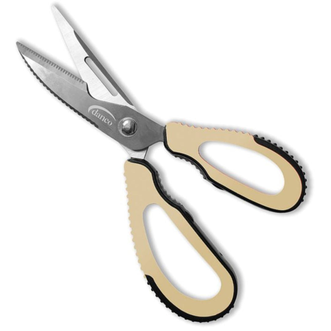 9" (22.86cm) overall. 4.5" (11.43cm) blade. Sandstorm rubber handle. 304 stainless partially serrated blades. Integrated bottle opener, screwdriver, and leverage grip. Unlocks and separates at hinge for easy cleaning.