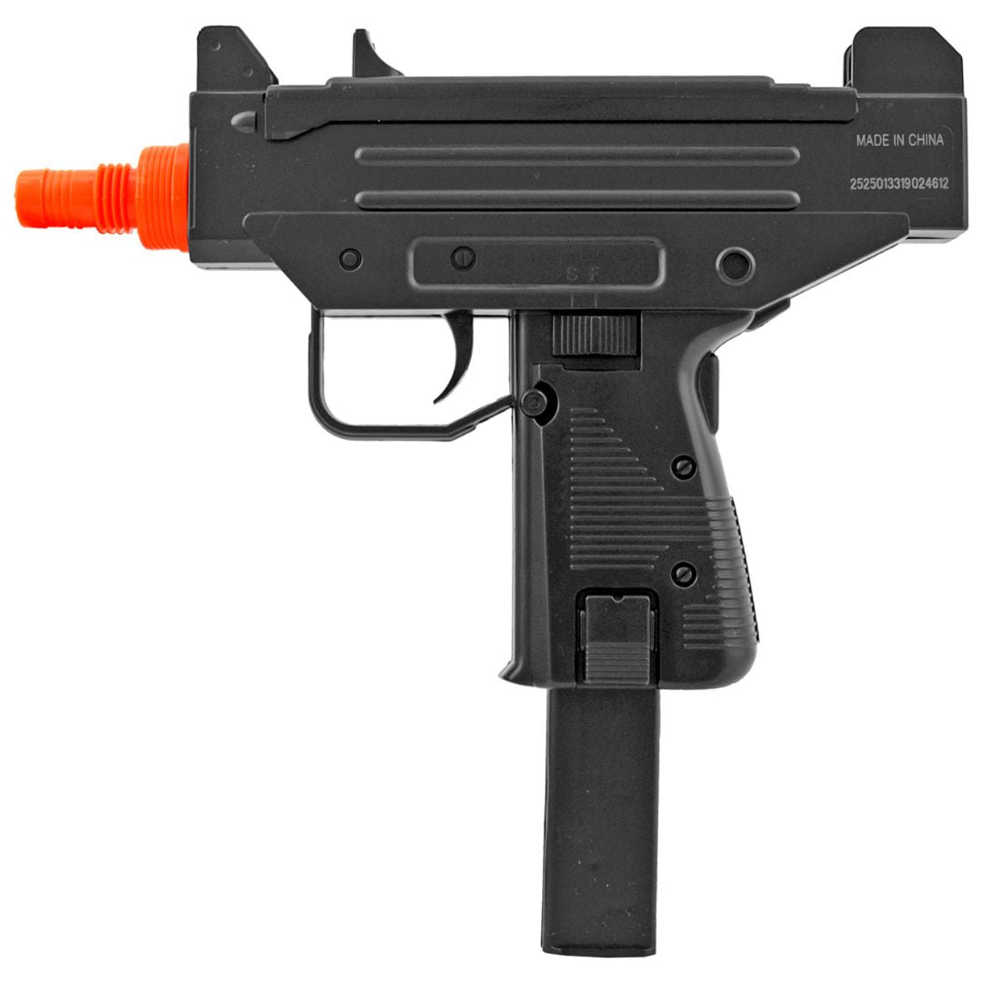 The Double Eagle Micro Uzi Airsoft Gun is constructed from plastic that keeps the weight down while maintaining a realistic look. The Micro Uzi is spring powered so it does not require additional battery packs or CO2 Cartridges. The Double Eagle Micro Uzi has realistic features such as the pistol grip, sights, and magazine. You may also be interested in more airsoft ammo for your new gun, check out our Airsoft BB Ammo shipping from within USA.