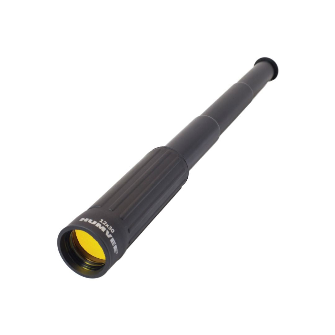 The HUMVEE Rubber Coated Telescope combines innovation, technology, and cutting-edge design to provide optical excellence with an exceptional value. This telescope has a 12x magnification, 30mm objective lens diameter, extends to a full 15-Inches and is designed for long distance observation.