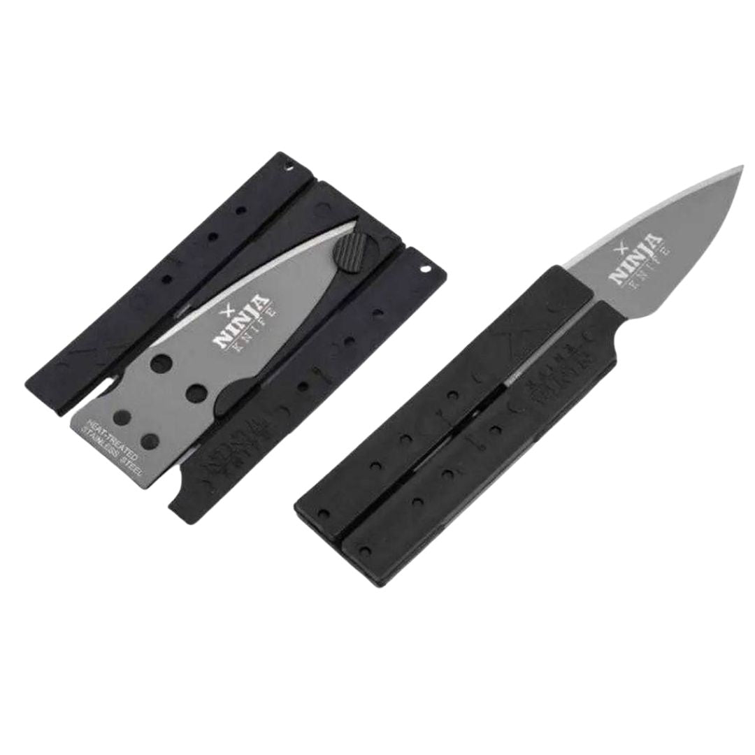 The Ninja Knife from Wallet Ninja is a compact folding knife with the length and width of a credit card. Slip this useful tool into your wallet and you can always have a knife at the ready. The 3" blade is made from surgical stainless steel and features a gray heat treated finish and a razor sharp edge. With three easy steps the Ninja Knife folds from the closed to open position in seconds. The Ninja Knife is far less bulky than a traditional pocketknife and just as easy to use.