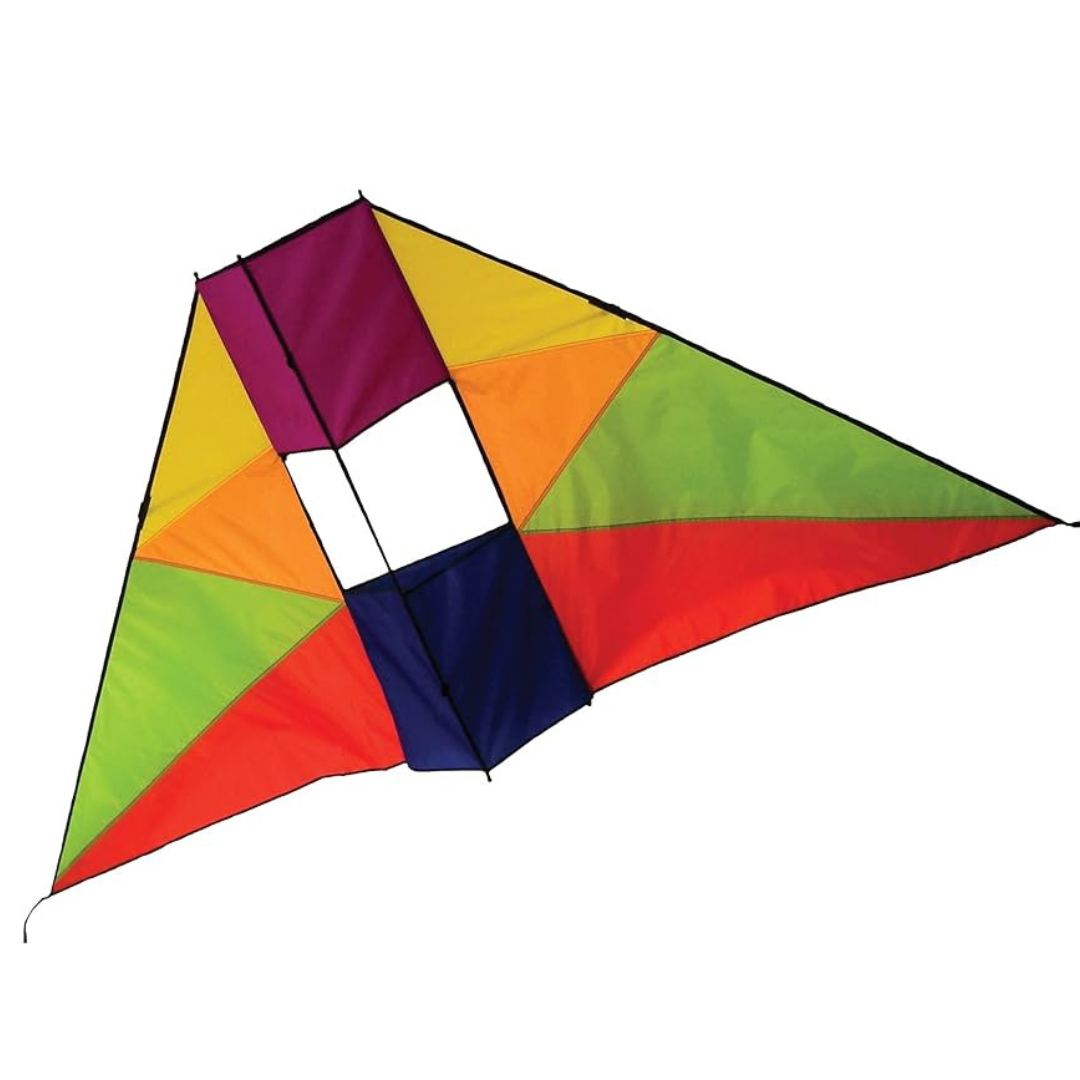 The 6' Rainbow Conyne Delta Kite combines features of both the delta kite and the conyne design. The bright, bold colors look great against the sky. The hybrid design makes them stable flyers that are fun to fly and great for the whole family!