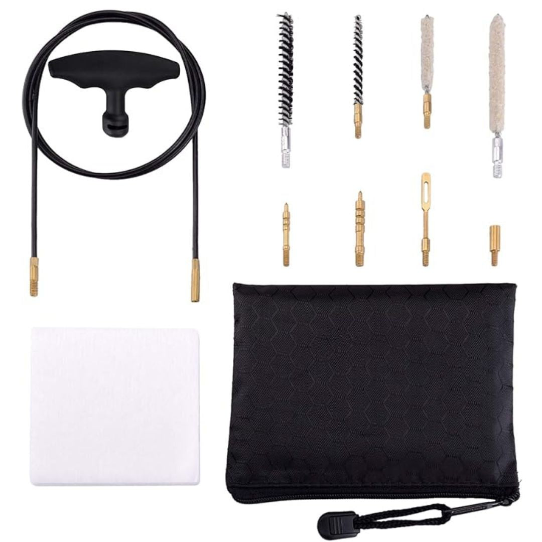 Gun Maintenance Kit Includes: .22 cal & .17 cal Nylon Brush, .22 cal & .17 cal Cotton Mop, .22 cal & .17 Brass Jag, .17 cal Patch Holder, 50 pcs Cleaning Patches, 31.5 Inch Nylon Coated Cleaning Cable