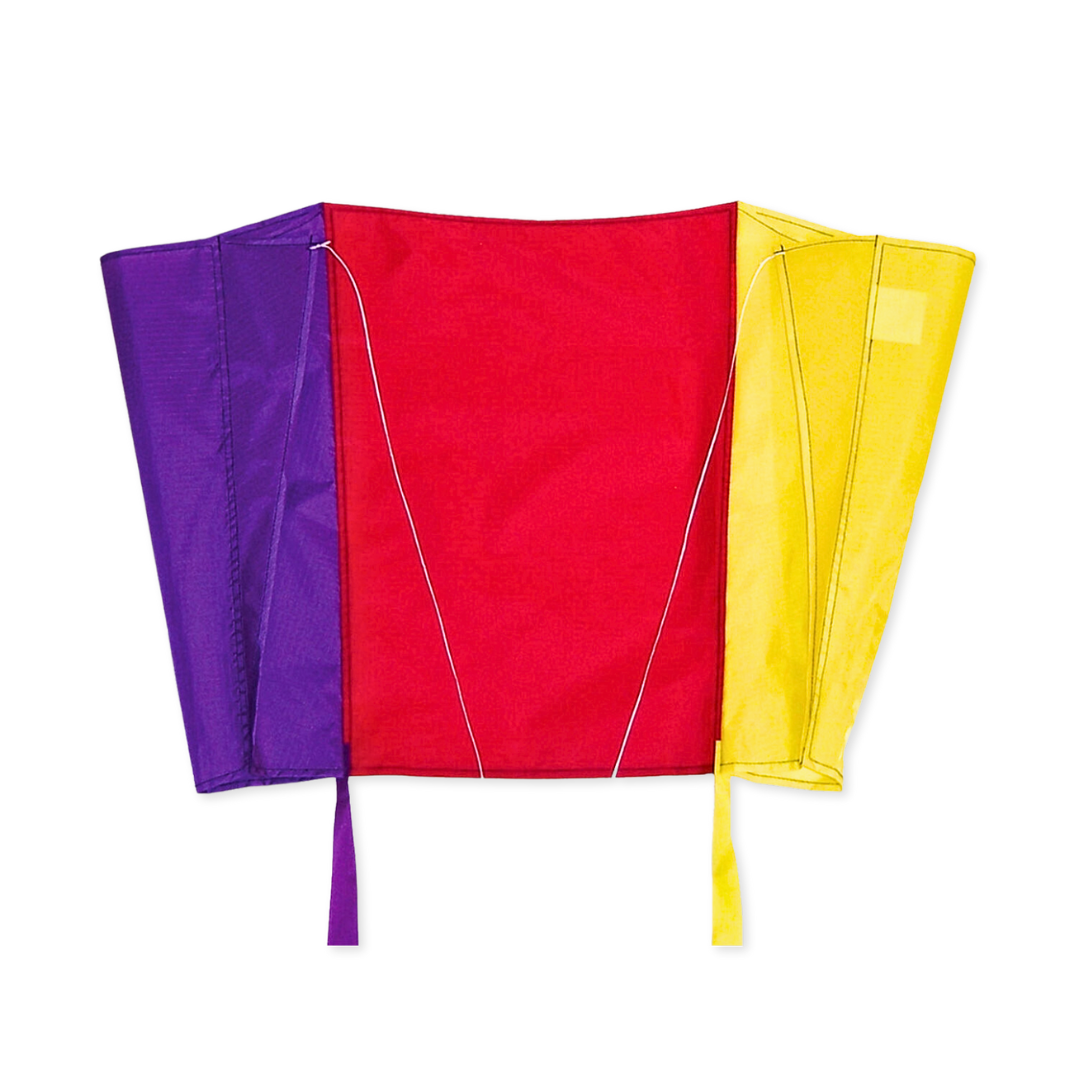 Our Sled Kite has an aerodynamic cell structure inflated by wind. Air pressure keeps the sail open and holds the kite’s shape while it flies. This style of kite is known to be a stable and easy flier.