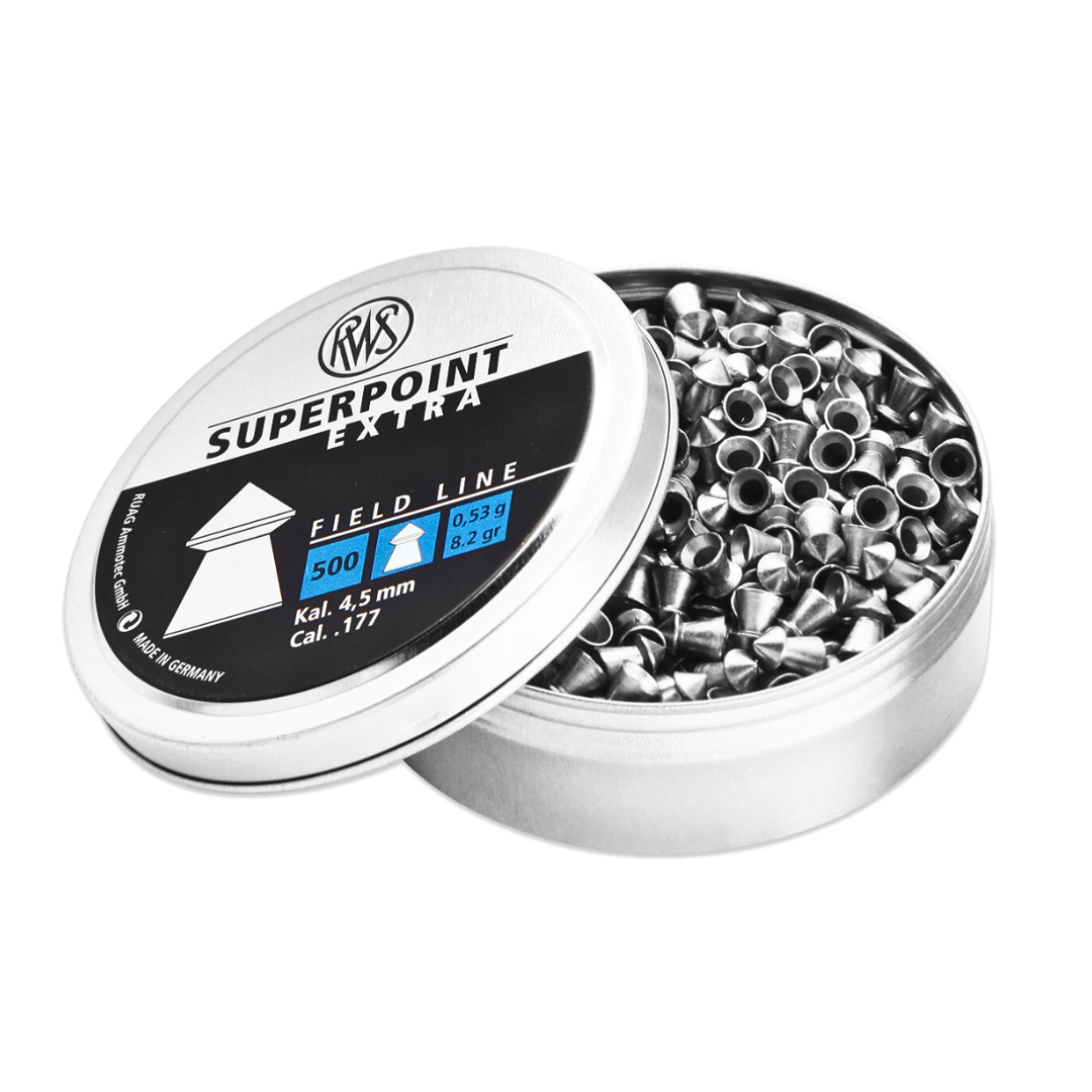 Umarex RWS Super point Extra pellets enhances performance of many mid-range air guns and pellet rifles. They offer consistent accuracy through precision manufacturing. Thanks to its conical head design offer amazing penetration capabilities. Features:- RWS field line pellet- Conical head design, Deep penetration, Enhances performance of mid-range air guns.